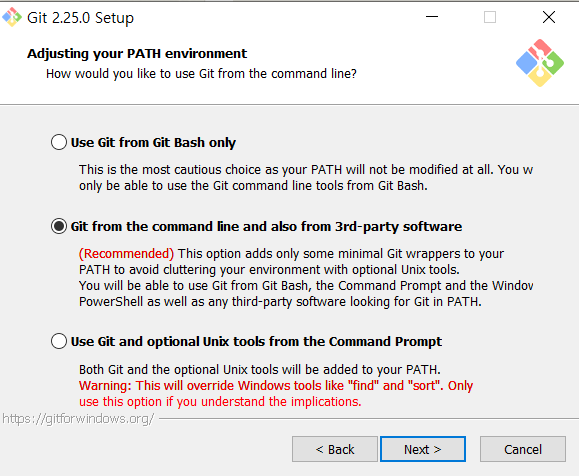 위에는 Git이라고 되어있는데 실제로는 C:\Program Files\Git\cmd 까지 입력해야 한다.