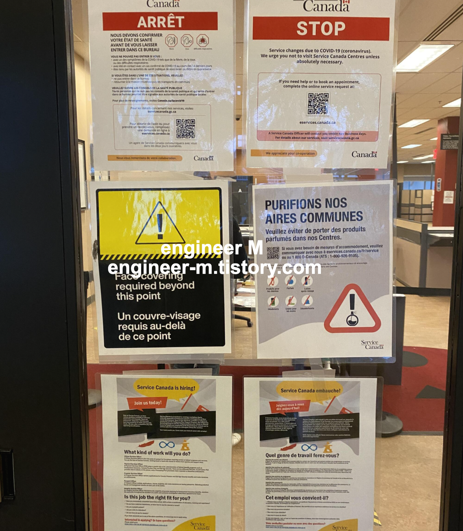 "Service Canada ๊ฐ๋ค ์ฌ๊ฑฐ์ผ. ์ผ๋ง๋ ๊ฑธ๋ฆฌ์ง ๋ชจ๋ฅด์ง๋ง ์ต๋ํ ์์นจ ๋ฏธํ ๋ง์ถฐ์ ๋์์ค๊ฒ์"